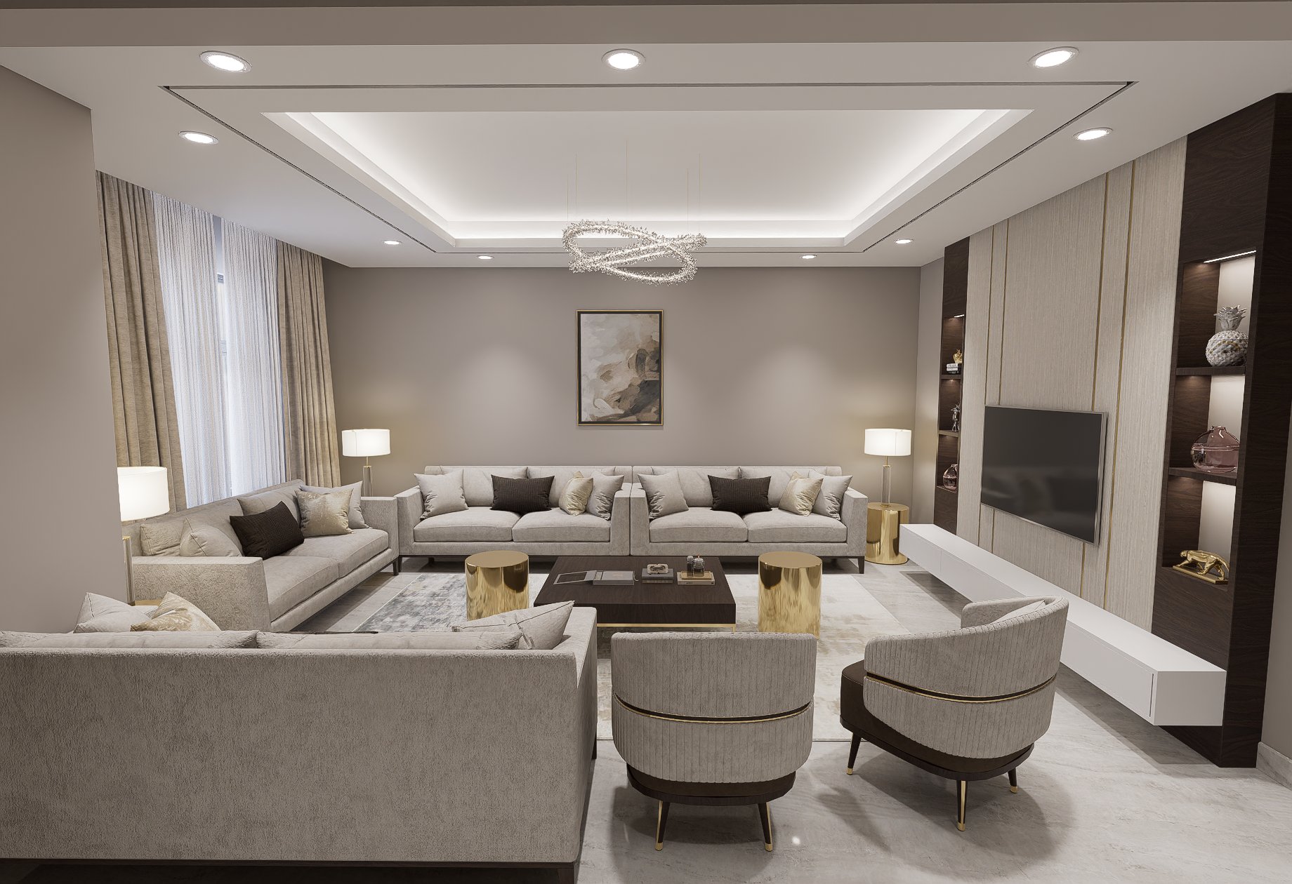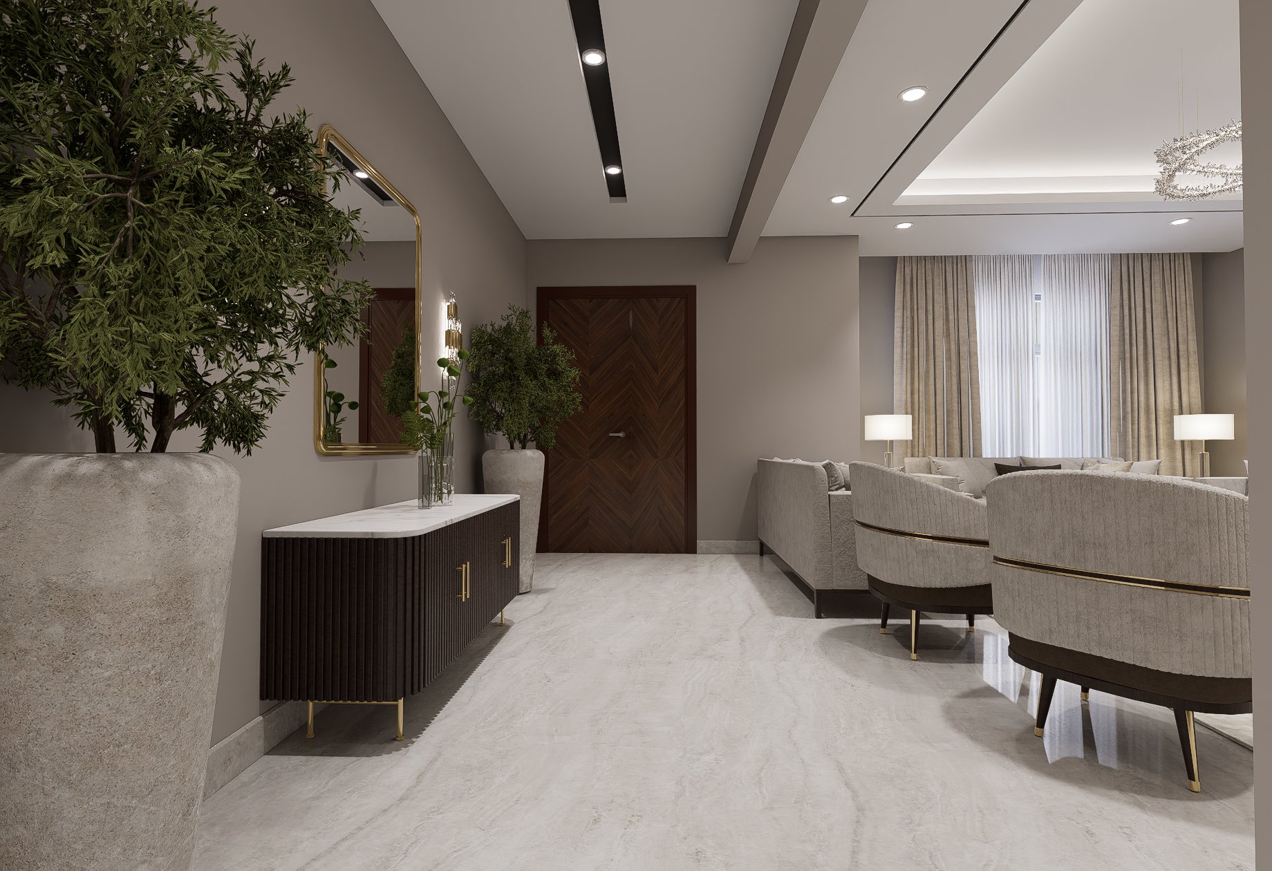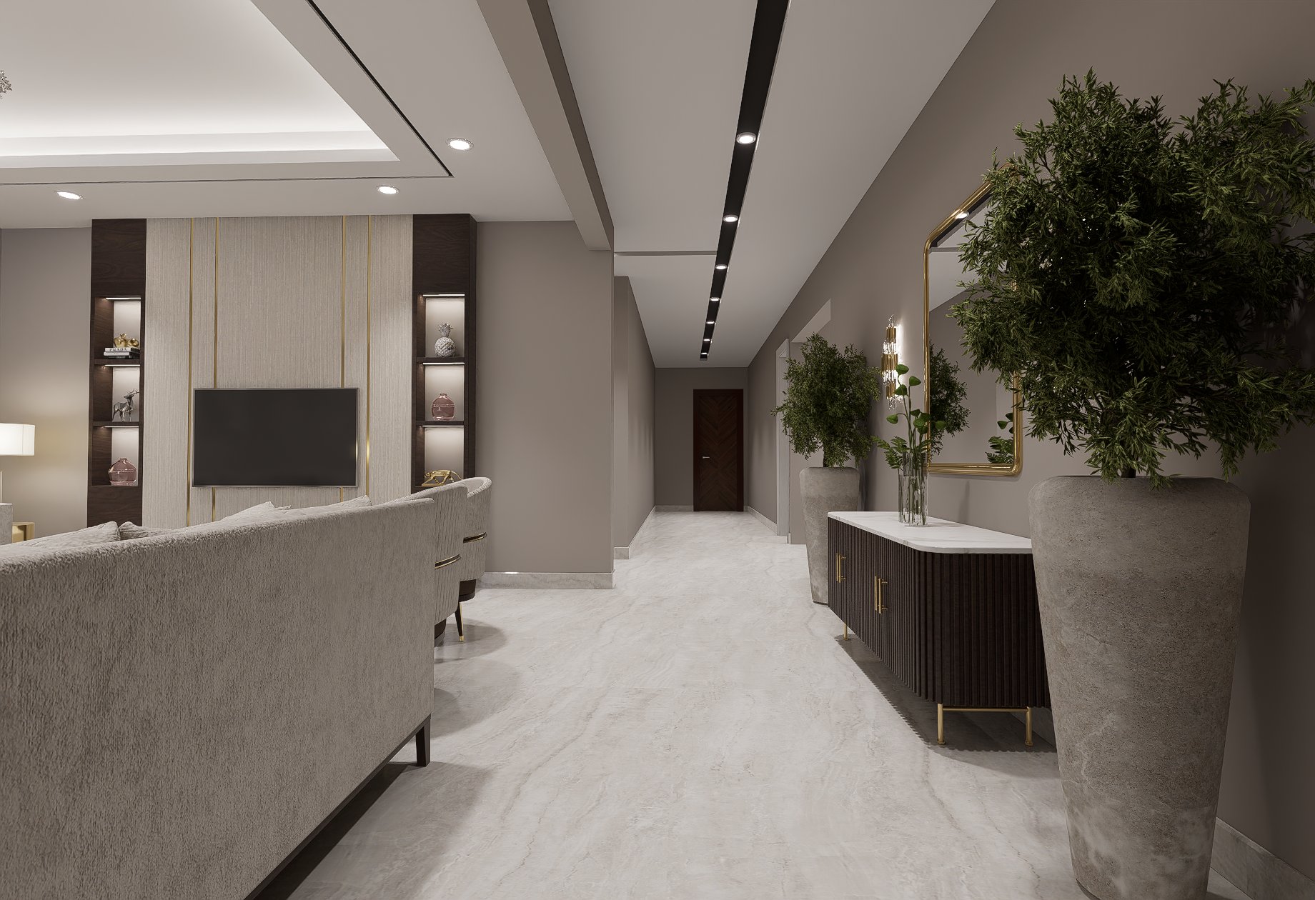 مشروع تصميم وتشطيب فيلا سكنية فاخرة بمنطقة المستثمرين بالقاهرة الجديدة بمعايير احترافية عالية. يشمل المشروع تأسيسات كاملة للكهرباء والصحي والتكييف المخفي، محارة داخلية كاملة، أسقف جبس مستورد متعددة المستويات بإضاءة LED مخفية وسبوت لايت ونجف عصري، أرضيات رخامية فاتحة، حوائط مدهونة بألوان هادئة، تصميم وتنفيذ المطبخ، أعمال ألوميتال، وديكورات متكاملة حسب التصميم المعتمد لتسليم فيلا جاهزة بأرقى التشطيبات.