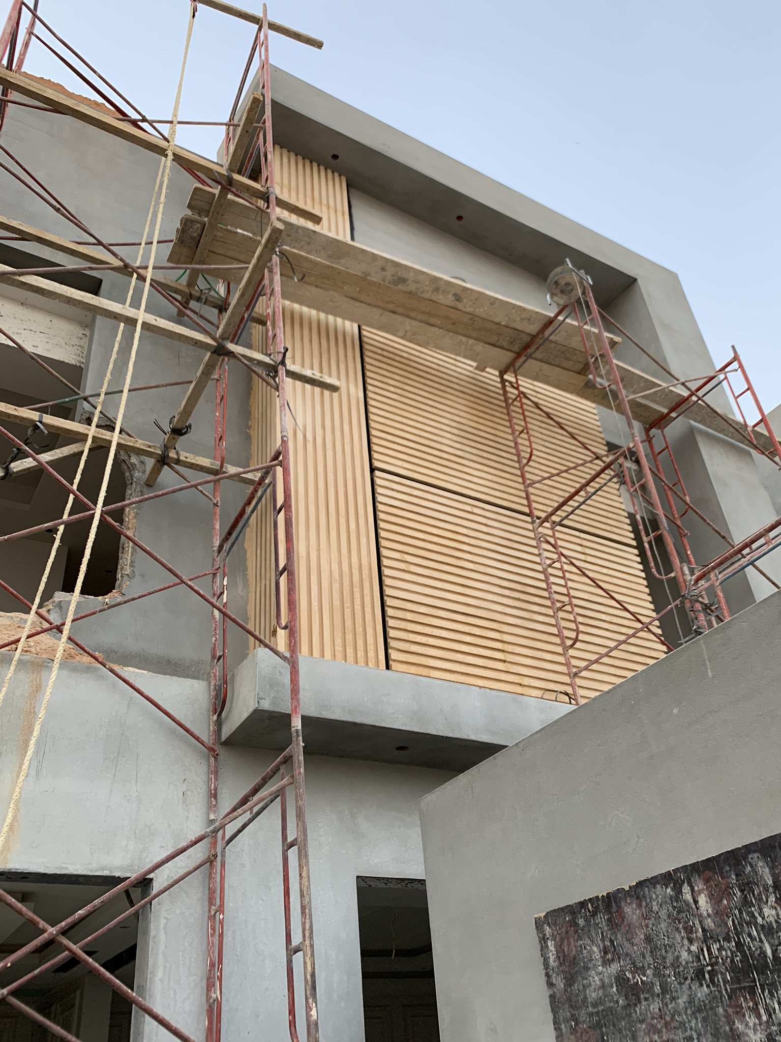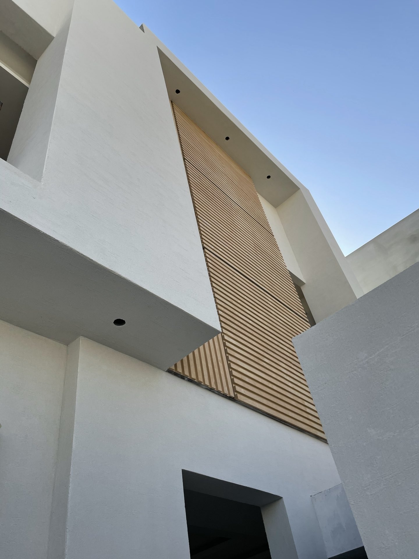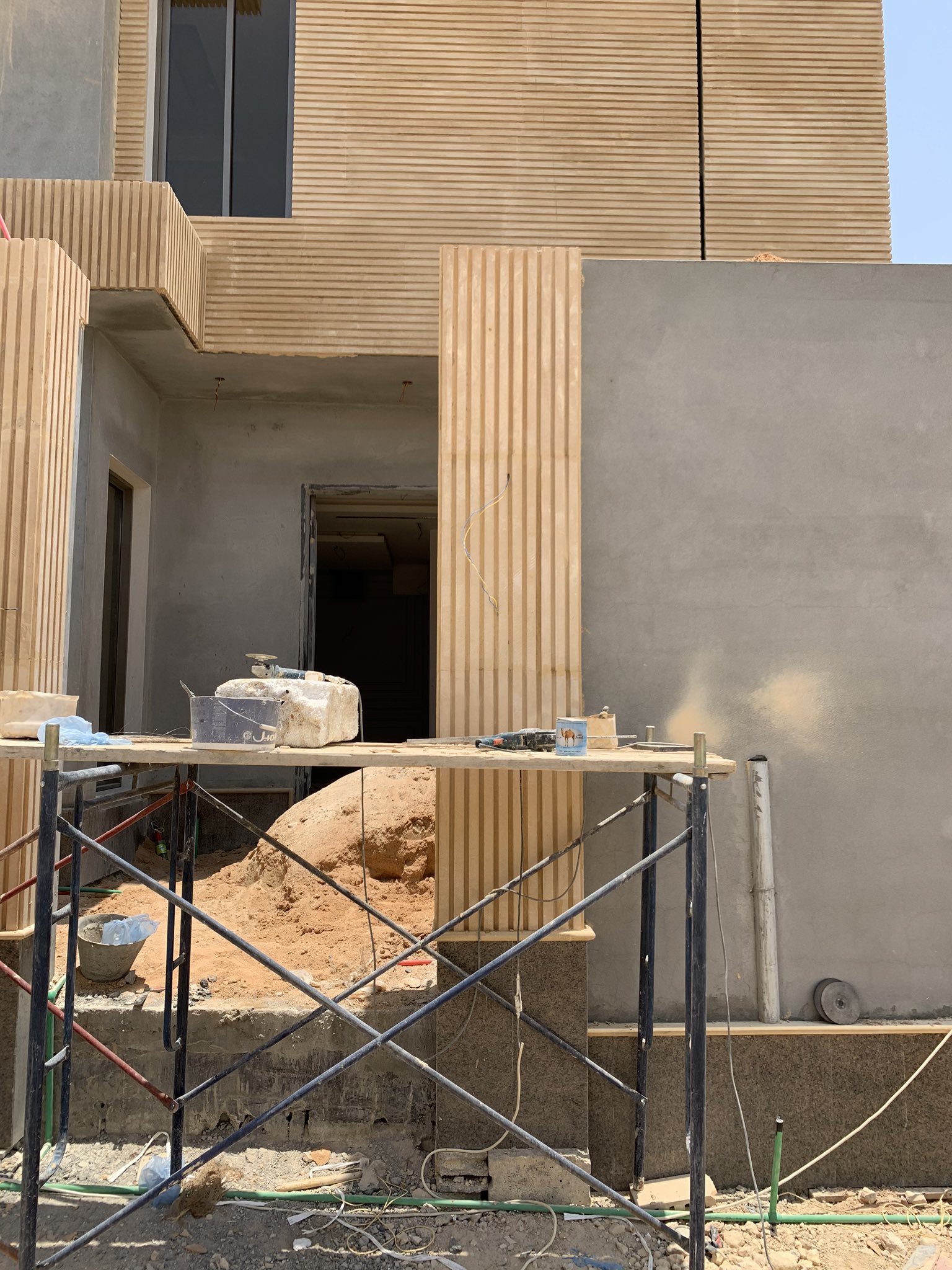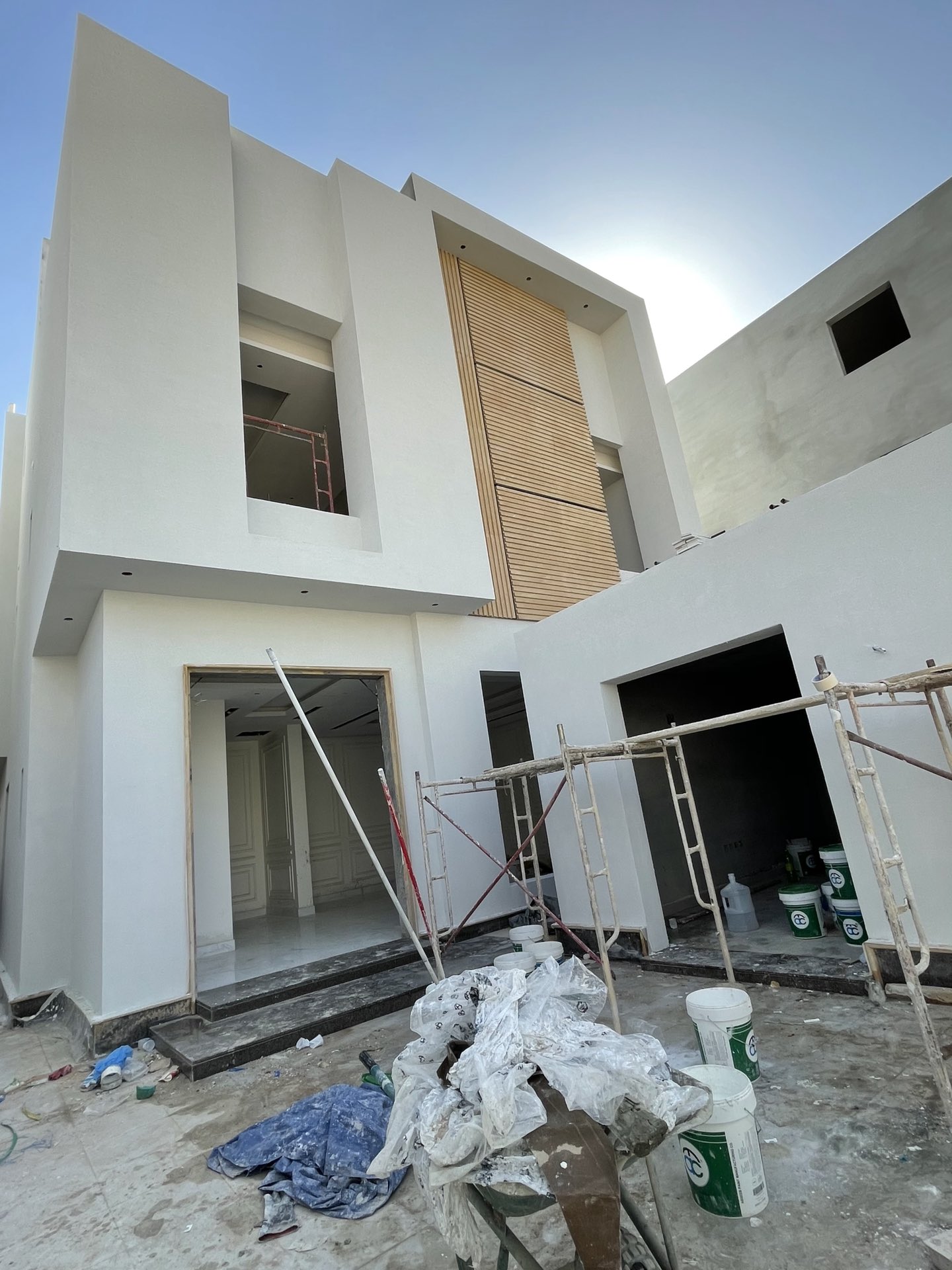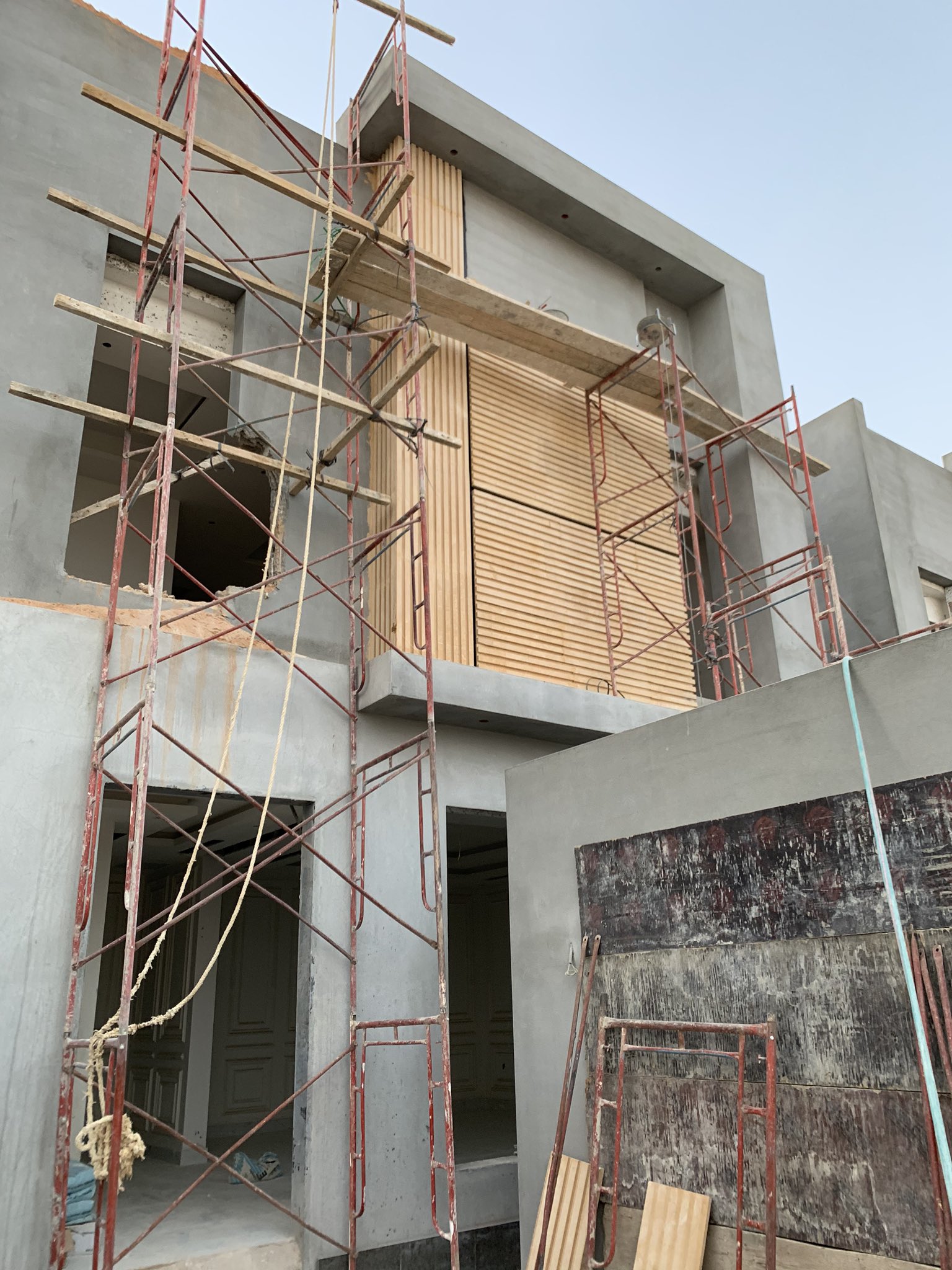 مشروع تصميم وتنفيذ وتشطيب واجهات فيلا بمدينة الشيخ زايد بأسلوب مودرن يجمع بين البساطة والفخامة. يشمل المشروع أعمال التعديلات المعمارية والمحارة ودهانات خارجية بيضاء مع تكسيات ألواح خشبية أفقية، إضافة لإنارة سبوت لايت مخفية لإبراز التفاصيل ليلاً. كما تم تنفيذ التشطيبات الداخلية الكاملة من تأسيس كهرباء وصحي ومحارة ودهانات ورخام حسب التصميمات المعمارية المعتمدة.