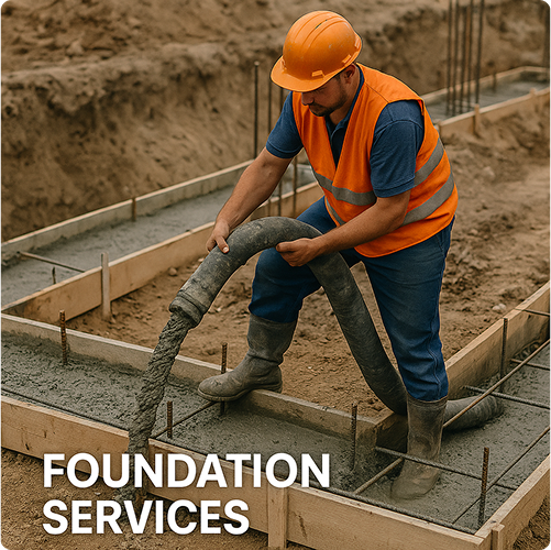 In a construction context, this refers to the design and construction of the substructure of a building that supports the entire load. This includes site preparation, excavation, and the installation of footings, slabs, or other foundation types appropriate for the soil conditions and building design.